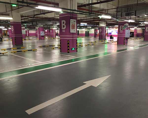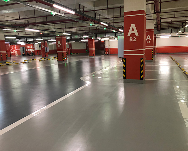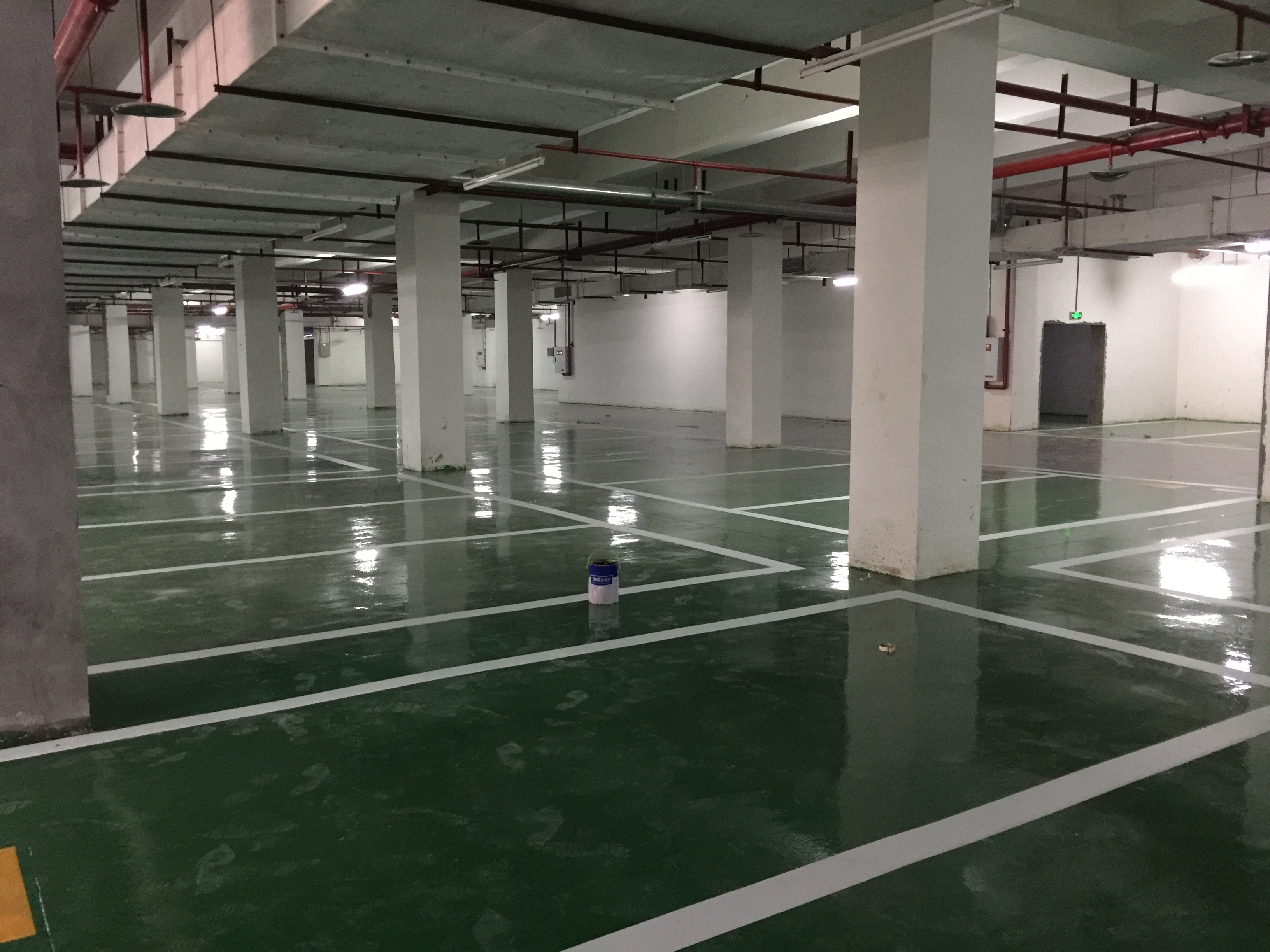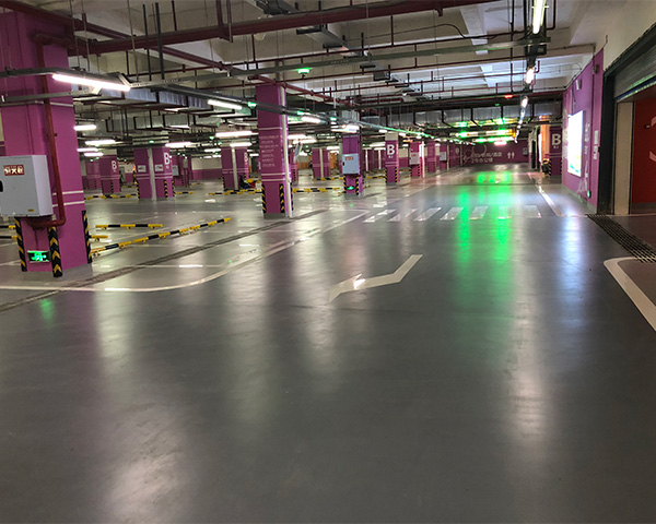 重庆华融广场地下车库:吴无溶剂环氧自流平+高耐磨聚氨酯罩面系统